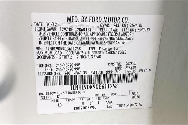 Clean CARFAX. White Platinum Metallic Tri-Coat 2013 Lincoln MKS FWD 6-Speed Automatic 3.7L V6 Ti-VCT 24V **CLEAN VEHICLE HISTORY REPORT** 3.7L V6 Ti-VCT 24V FWD Light Dune w/Premium Perforated Leather-Trimmed Bucket Seats 20"" Wheels Dual-Panel Moonroof Fully automatic headlights Navigation System Radio: AM/FM CD/MP3-Capable/Lincoln Premium Audio Rear-View Camera Security system SIRIUS Satellite Radio.Were confident we have the right price for you the right quality for you the right level of trust for you and the proper respect for how you want to purchase an automobile. We pride ourselves on the best and fastest way to get all the information you need to make well-informed decisions all in 30 minutes or less. Express Buying is Fast Simple Friendly and Fair. It all adds up to the right car buying experience for you. Youll simply love the way we do business. Need specific reasons to start here? Have a look at the list below: Upfront prices. Zero hassles. Homer Skelton Ford makes it easy to find the right car for you at a price you can trust. Your car's no-haggle price is the same online as it is on the lot and we will validate our pricing 100% of the time. We also offer very flexible financing options. We stand behind our cars. All of our used cars are Quality Certified and come with a free vehicle history and safety recall report 72-Hour Money-Back Guarantee and 30-Day Limited Warranty. Certain vehicles may have unrepaired safety recalls. We'll buy your car even if you don't buy ours. Our fast free appraisal process along with our partnership with Kelly Blue Books Trade-In Buying Center ensures the most money for your Trade-In. KBB will write you a check for your automobile or we will! Either cash offer is good for seven days. And we'll buy any car no matter its age or condition. Odometer is 15407 miles below market average! 18/27 City/Highway MPG